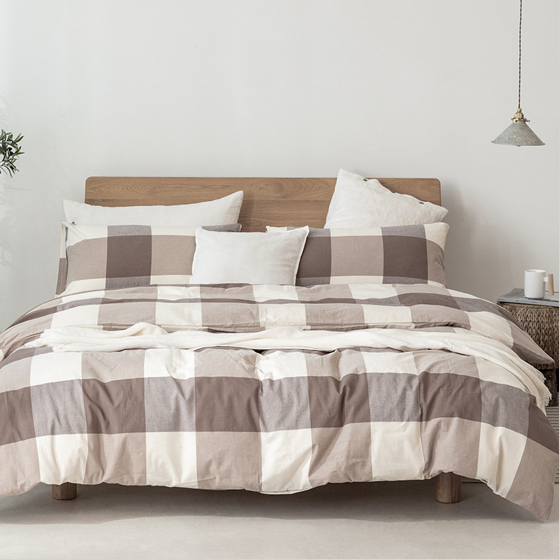 Washed Cotton Bed Sheet Set - Khaki plaid