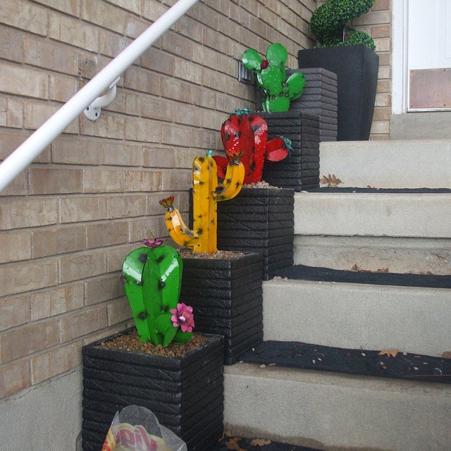 🌵Beautiful Metal Saguaro for indoor and outdoor display, they come in a variety of different colors and sizes! Mix and match different styles or get the same color for all of them, these gorgeous garden decoration are handmade, making your piece truly unique!