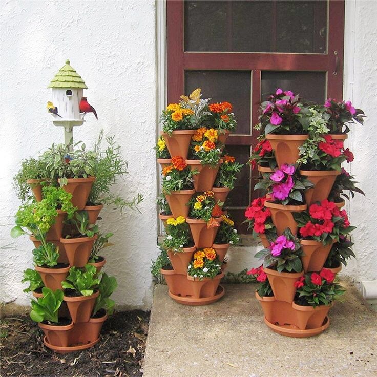 🎍Set up this stacked planter in your home balcony garden and plant your favorite plants such as strawberries or flowers!🍓🌼