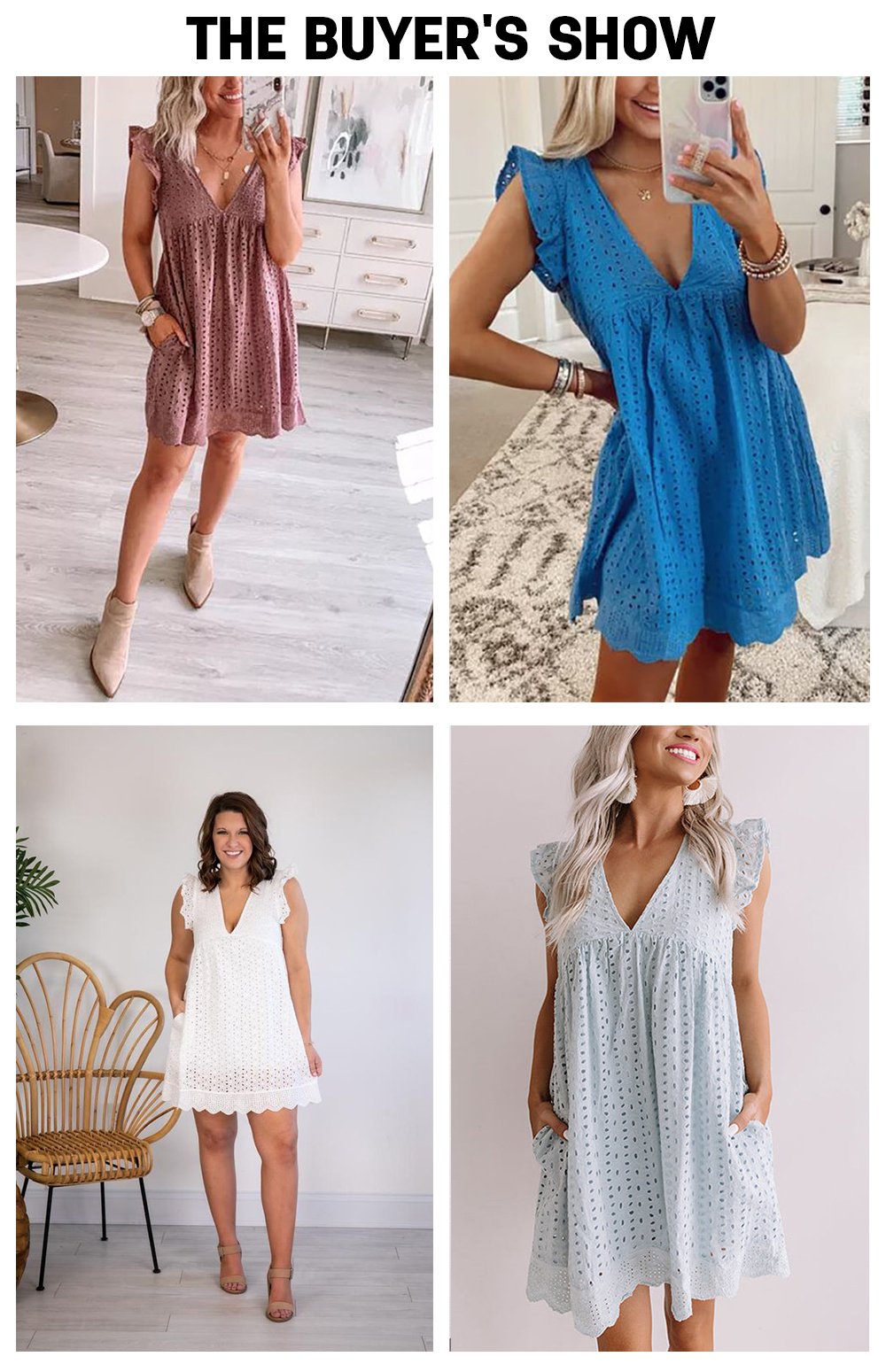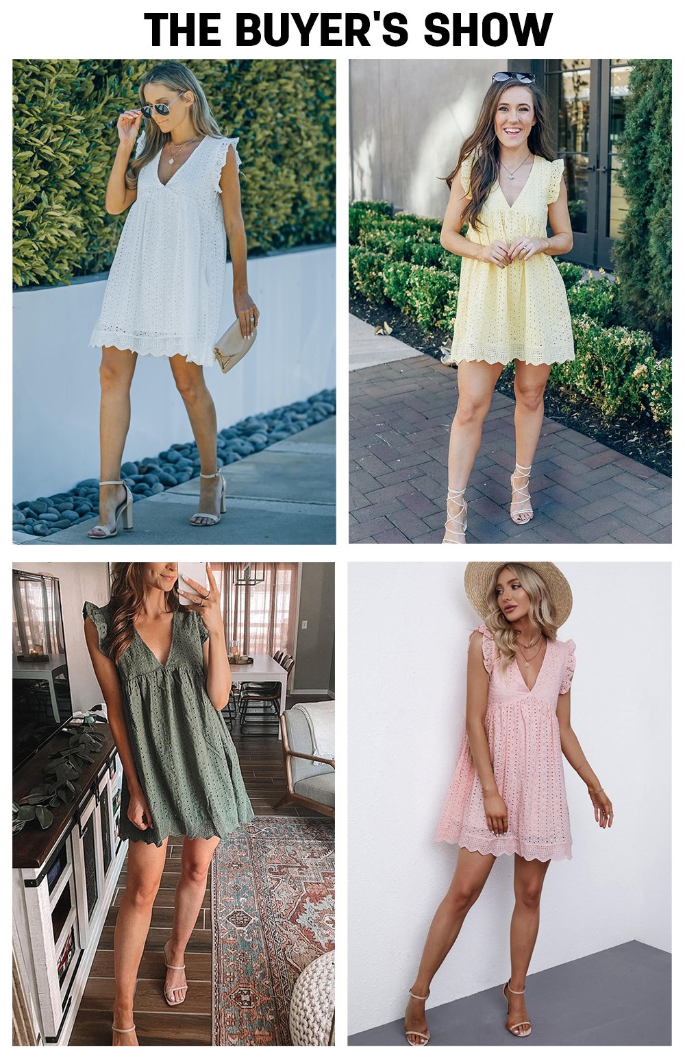 ✔️ V-Neckline With Ruffled Sleeves & Eyelet Hem