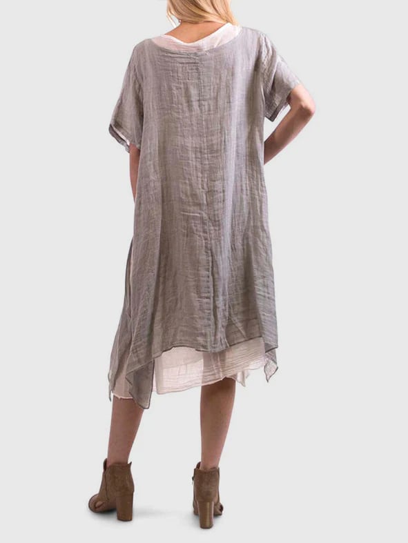 This is a dress made from high quality, eco-friendly natural cotton and linen fabric. It features a sleek two-piece design with a flattering side slit and a premium, elegant colorway. Wearing it can not only bring a comfortable wearing experience, but also highlight the fashionable and elegant femininity.