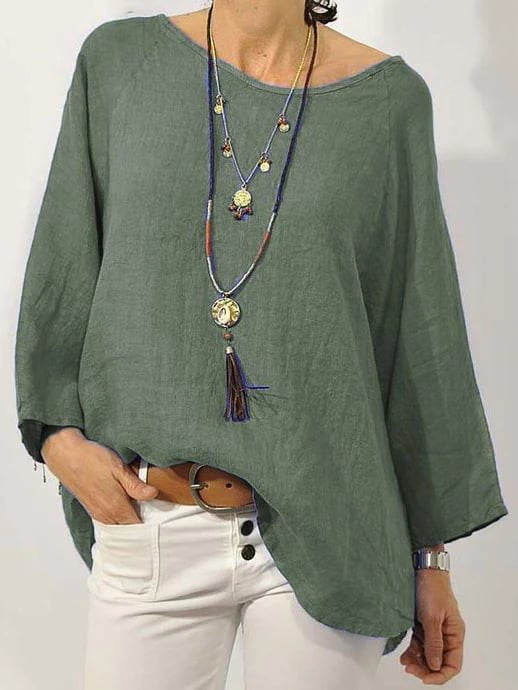 Solid Long Sleeve Linen Daily Top