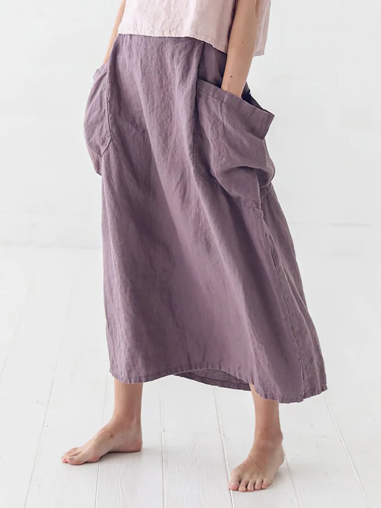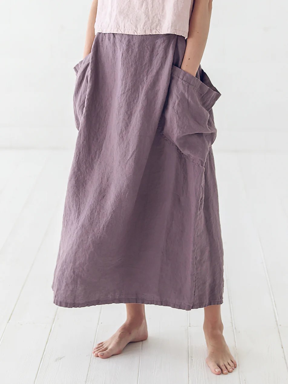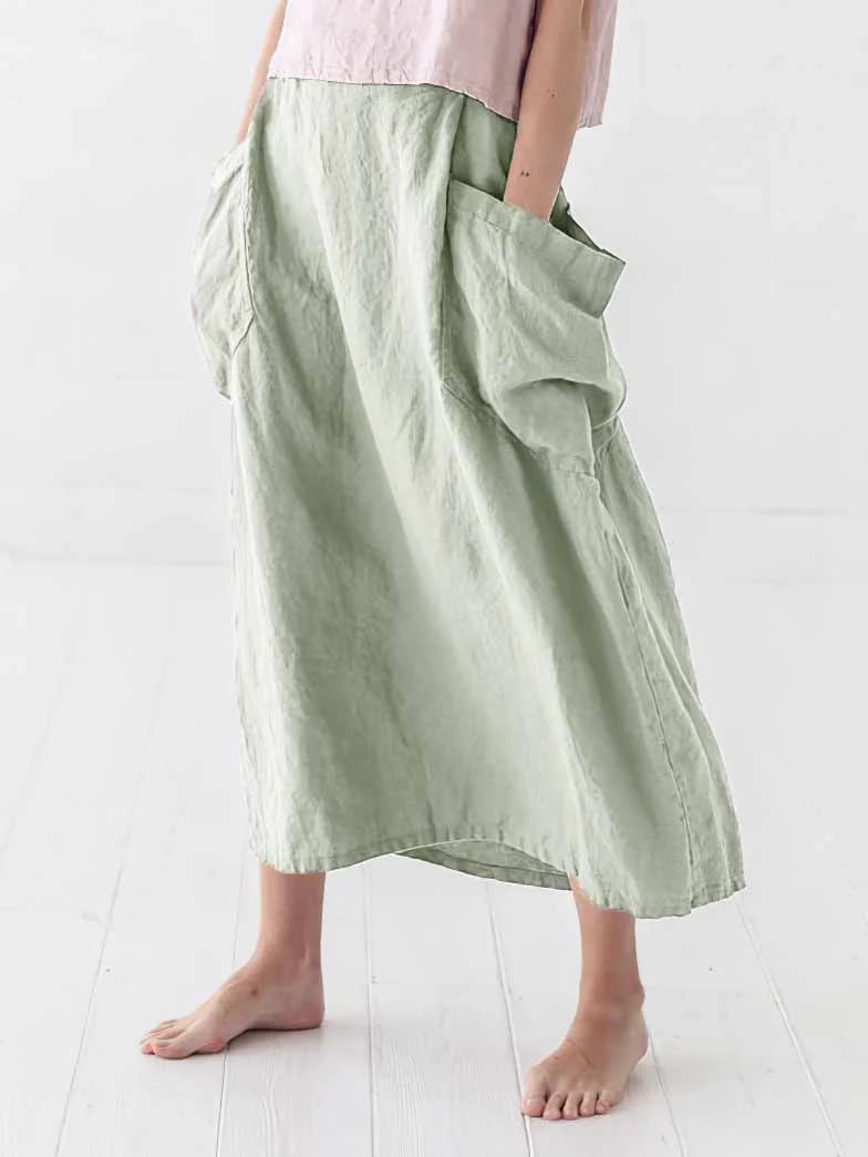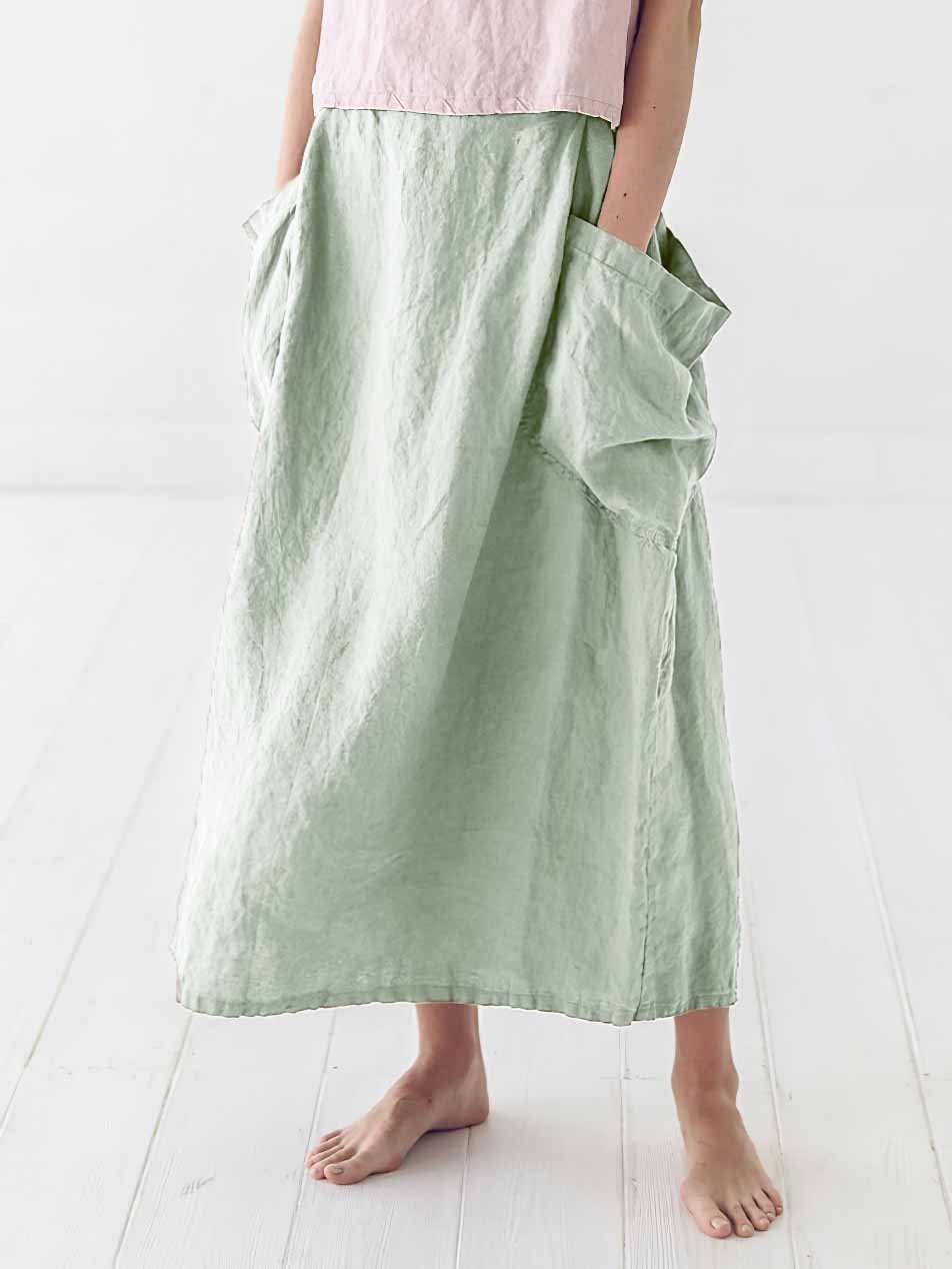 Soft linen skirt is first choice for a warm summer day. Let's go to romantic adventures, feel free and stay stylish and feminine.