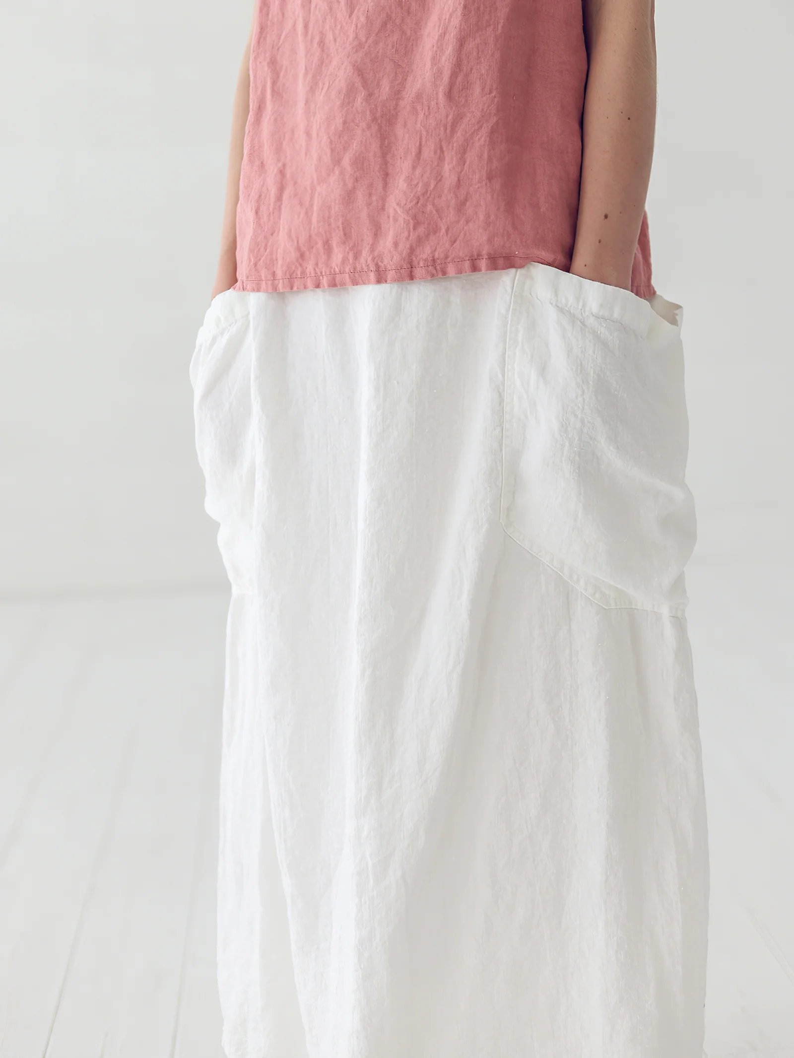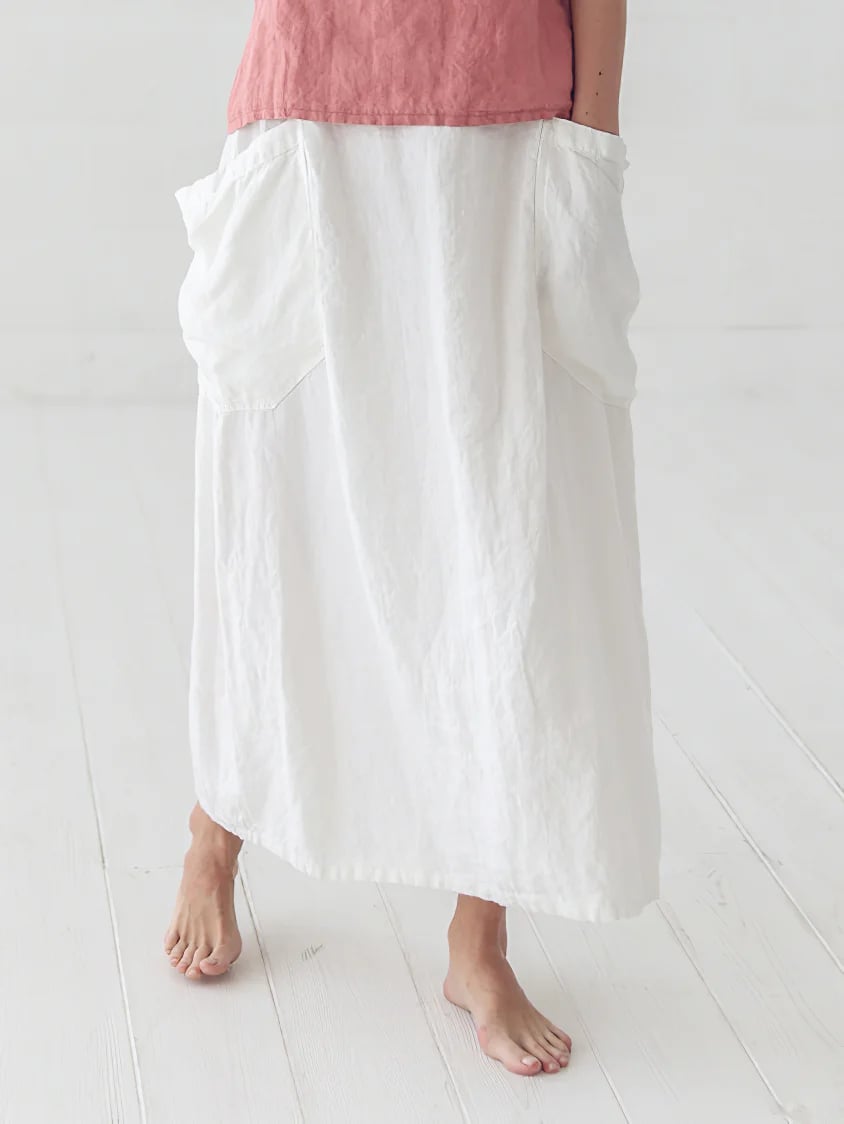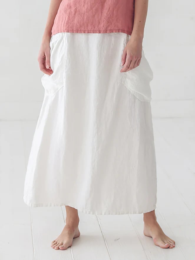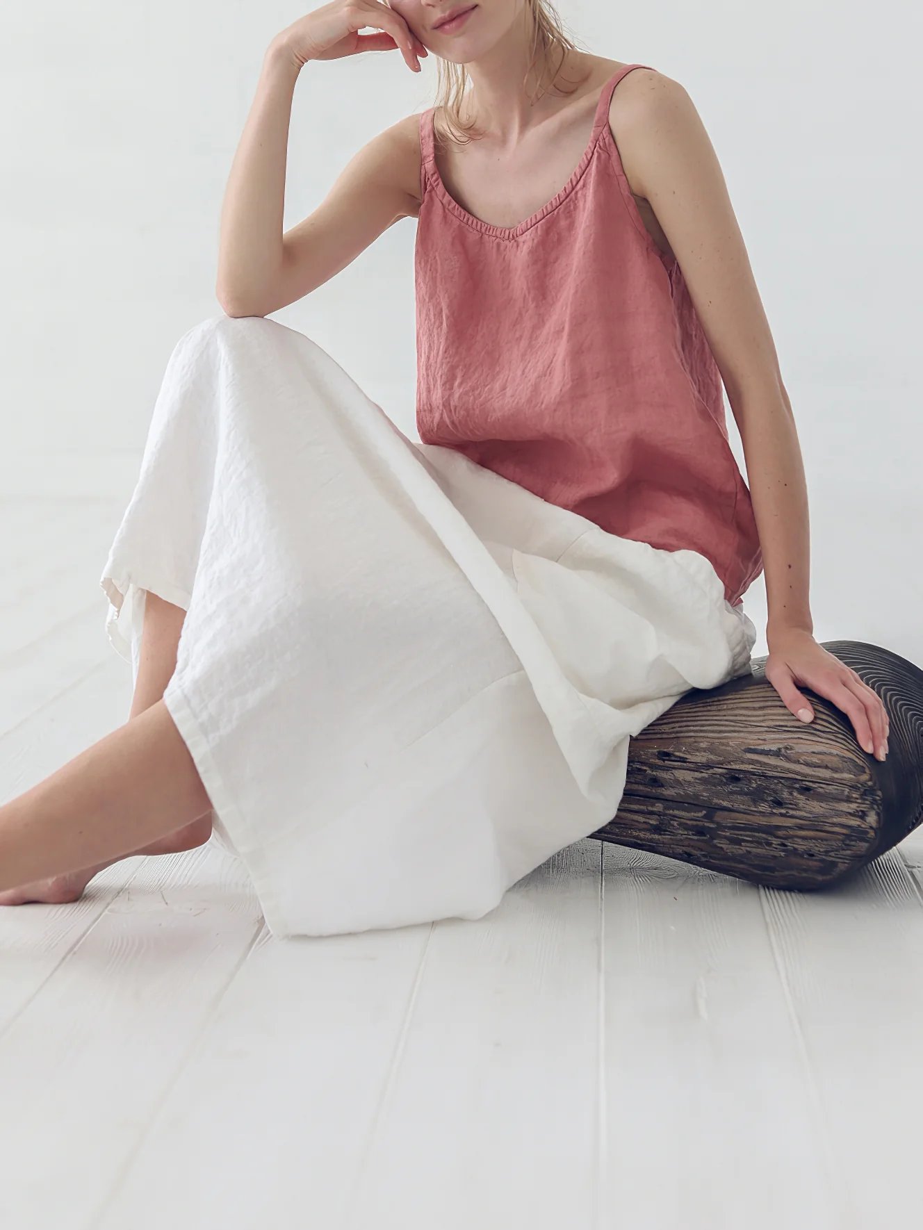 Soft linen skirt is first choice for a warm summer day. Let's go to romantic adventures, feel free and stay stylish and feminine.